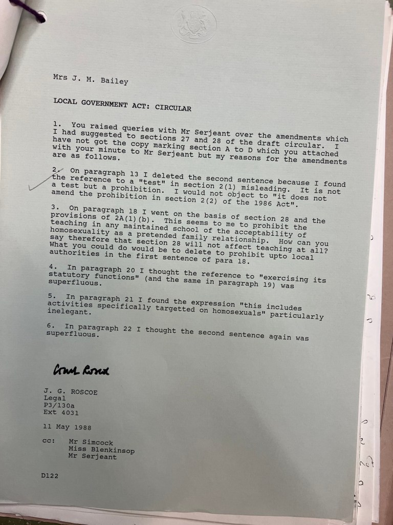 Queer activist, historian and sociologist Jeffrey Weeks (2016) has called Section 28 “perhaps as significant for lesbian and gay history as the 1885 Labouchere Amendment and the 1967 reform act” (238). The clause resulted in zero prosecutions, and it is acknowledged that its “impact lay in its symbolic value” (Weeks, 2016: 242). Research has found that the Act contributed to a “climate of fear and self-censorship” (Edwards et al, 2016) and “left a legacy of caution, self-censorship and complex identity management” (Lee, 2019) for LGBTQ+ teachers, institutionalised “a hierarchical relationship between heterosexuality and homosexuality” (Burridge, 2004: 329) and encouraged a climate of anti-queer bullying across British schools (ibid.).